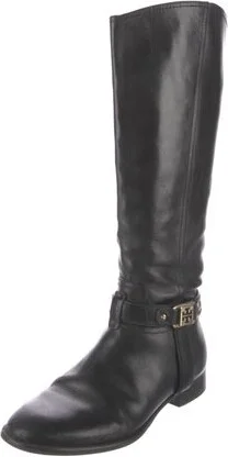 Tory Burch Leather Knee-High Riding Boots Black Round-Toes Wrap-Around Straps & Exposed Zip Closure at Sides Designer Fit: This designer typically runs true to size. Unfortunately, due to restrictions Read more