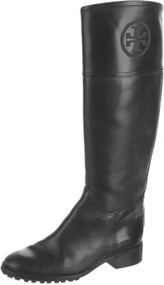 Tory Burch Leather Knee-High Riding Boots Black Round-Toes Designer Fit: This designer typically runs true to size. Unfortunately, due to restrictions, this item may not be eligible for shipping in al Read more