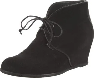 Stuart Weitzman Suede Ankle Lace-Up Boots Black Round-Toes Lace-Up Closure at Uppers Designer Fit: This designer typically runs true to size.