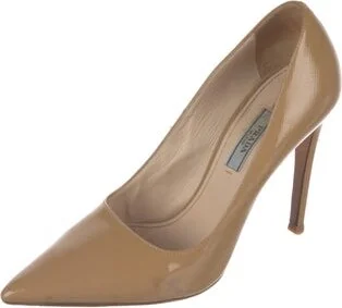 Prada Patent Leather Pumps Neutrals Leather Trim Pointed-Toes Designer Fit: Pumps by Prada typically run a half size small. Read more
