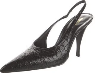Saint Laurent Leather Slingback Pumps Black Pointed-Toes Straps Includes Dust Bag Designer Fit: Pumps by Saint Laurent typically run a half size small. Unfortunately, due to restrictions, this item ma Read more