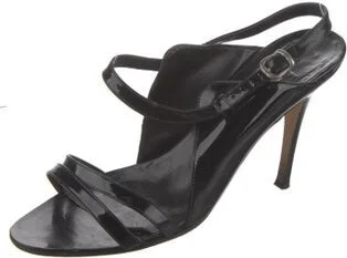 Manolo Blahnik Patent Leather Slingback Sandals Black Straps & Buckle Closure at Ankles Fit: This style typically runs narrow and a half size small. Read more