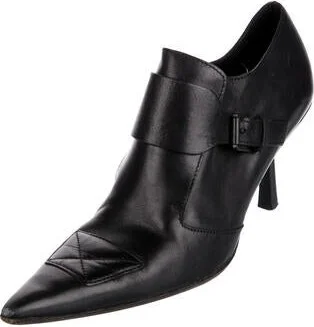 Gucci Leather Ankle Boots Black Pointed-Toes Straps & Buckle Closure at Sides Fit: This style typically runs a half size small. Unfortunately, due to restrictions, this item may not be eligible for shipping in all areas.