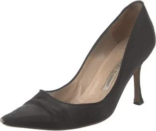 Manolo Blahnik Satin Pumps Black Semi-Pointed Toes Fit: This style typically runs narrow and a half size small. Read more