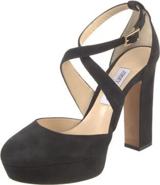 Jimmy Choo Suede D'Orsay Pumps Black Round-Toes Platform Crossover Straps & Buckle Closure at Ankles Fit: This style typically runs a half size small. Read more