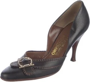 Salvatore Ferragamo Leather D'Orsay Pumps Semi-Pointed Toes Tie Closures Fit: This style typically runs a half size small. Unfortunately, due to restrictions, this item may not be eligible for shippin Read more