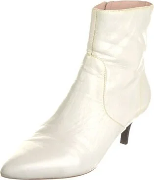 Loeffler Randall Leather Ankle Boots White Pointed-Toes Concealed Zip Closure at Sides Unfortunately, due to restrictions, this item may not be eligible for shipping in all areas.