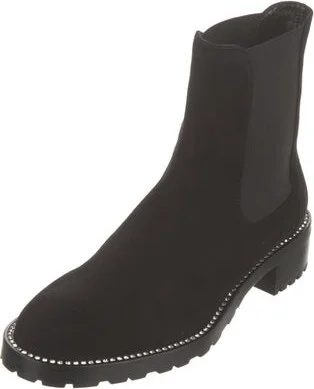 Stuart Weitzman Suede Ankle Chelsea Boots Black Round-Toes with Chain-Link Accents Includes Box & Dust Bag Designer Fit: This designer typically runs true to size.