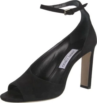 Jimmy Choo Suede D'Orsay Pumps Black Peep-Toes Wrap-Around Straps & Buckle Closure at Ankles Includes Box & Dust Bag Fit: This style typically runs a half size small.