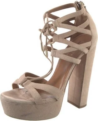 Aquazzura Suede Sandals Neutrals Platform Multistrap & Tie Closures