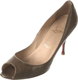 Christian Louboutin Patent Leather Pumps Brown Leather Trim Peep-Toes Designer Fit: This style typically runs a half size to a full size small. Read more