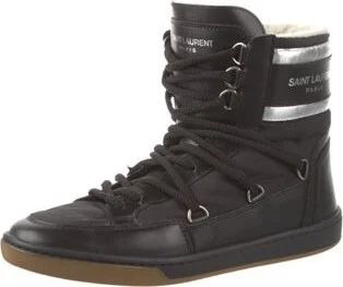 Saint Laurent Mesh High Top Wedge Sneakers Black Round-Toes Lace-Up Closure at Uppers Read more