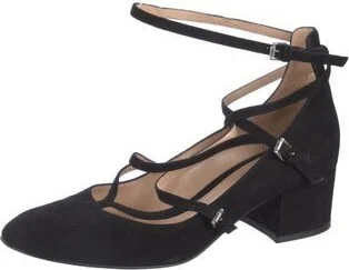 Gianvito Rossi Suede Pumps Black Semi-Pointed Toes Wrap-Around Straps & Buckle Closure at Ankles Designer Fit: Pumps by Gianvito Rossi typically run a half size small. Read more