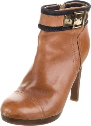 Tory Burch Leather Ankle Boots Brown Suede Trim Semi-Pointed Toes Platform Wrap-Around Straps & Exposed Zip Closure at Sides Designer Fit: This designer typically runs true to size. Unfortunately, due Read more