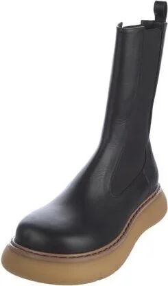 Khaite Leather Ankle Chelsea Boots Black Colorblock Pattern Rubber Trim Square-Toes Platform Unfortunately, due to restrictions, this item may not be eligible for shipping in all areas. Read more