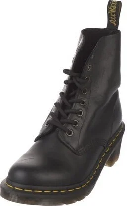 Dr. Martens Leather Ankle Combat Boots Black Rubber Trim Round-Toes Platform Lace-Up Closure at Uppers Unfortunately, due to restrictions, this item may not be eligible for shipping in all areas. Read more