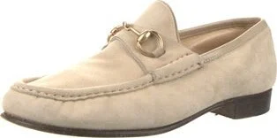 Gucci Suede Loafers Neutrals Horsebit Accent Round-Toes Designer Fit: Flats by Gucci typically run a half size small. Read more