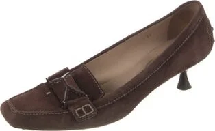 Tod's Suede Pumps Brown Square-Toes Read more