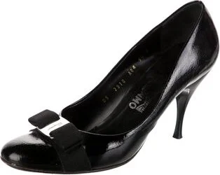 Salvatore Ferragamo Patent Leather Pumps Black Vara Bow Accent Round-Toes with Bow Accents Fit: This style typically runs a half size small. Read more