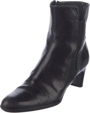 Stuart Weitzman Leather Ankle Boots Black Semi-Pointed Toes Exposed Zip Closure at Sides Designer Fit: This designer typically runs true to size. Unfortunately, due to restrictions, this item may not Read more