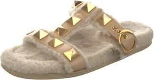 Valentino Fur Slides Neutrals Studded Accents Read more