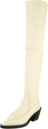 Khaite Leather Over-The-Knee Boots Neutrals Semi-Pointed Toes Exposed Zip Closure at Sides Unfortunately, due to restrictions, this item may not be eligible for shipping in all areas. Read more