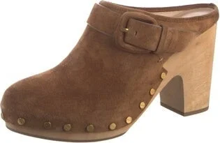 Veronica Beard Suede Mules Brown Semi-Pointed Toes with Studded Accents Platform Buckle Closure At Uppers Includes Box