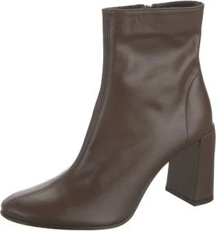 By Far Leather Ankle Boots Brown Square-Toes Exposed Zip Closure at Sides Unfortunately, due to restrictions, this item may not be eligible for shipping in all areas.