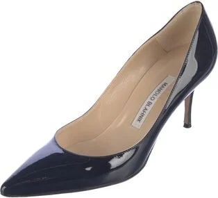 Manolo Blahnik Patent Leather Pumps Blue Pointed-Toes Fit: This style typically runs narrow and a half size small. Read more