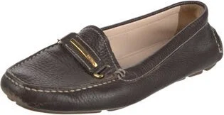 Prada Leather Loafers Brown Round-Toes Designer Fit: Flats by Prada typically run a half size small. Unfortunately, due to restrictions, this item may not be eligible for shipping in all areas. Read more