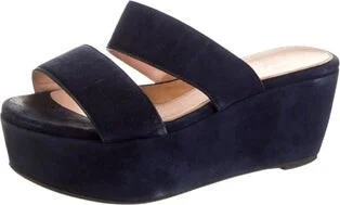 Robert Clergerie Suede Slides Blue Leather Trim Platform Designer Fit: Sandals by Robert Clergerie typically run a half size small.