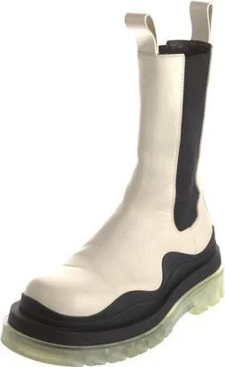 Bottega Veneta Leather Mid-Calf Chelsea Boots Neutrals Colorblock Pattern Round-Toes Unfortunately, due to restrictions, this item may not be eligible for shipping in all areas. Read more