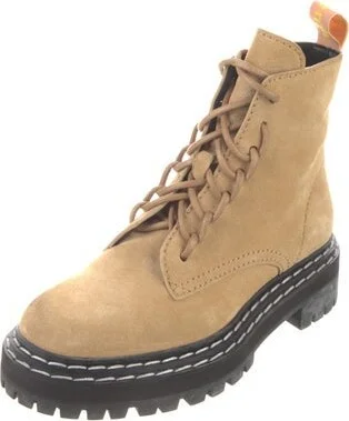 Proenza Schouler Suede Ankle Combat Boots Neutrals Round-Toes Platform Lace-Up Closure at Uppers Designer Fit: Boots by Proenza Schouler typically run true to size. Read more