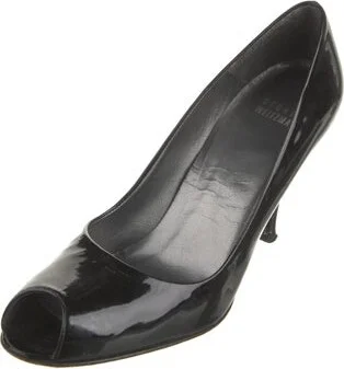 Stuart Weitzman Patent Leather Pumps Black Leather Trim Peep-Toes Designer Fit: This designer typically runs true to size.