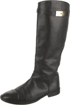 Tory Burch Leather Knee-High Riding Boots Black Round-Toes Concealed Zip Closure at Sides Designer Fit: This designer typically runs true to size. Unfortunately, due to restrictions, this item may not Read more