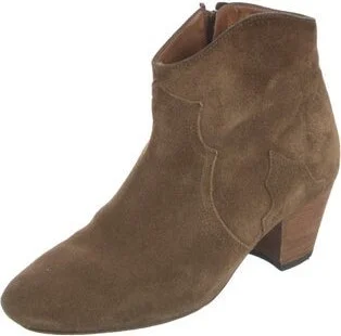 Isabel Marant Suede Ankle Western Boots Neutrals Round-Toes Concealed Zip Closure at Sides Read more