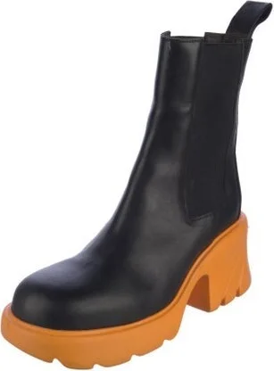 Bottega Veneta Leather Mid-Calf Chelsea Boots Black Rubber Trim Square-Toes Platform Includes Box & Dust Bag Unfortunately, due to restrictions, this item may not be eligible for shipping in all areas Read more