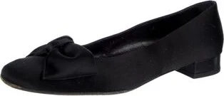 Salvatore Ferragamo Satin Flats Black Round-Toes with Bow Accents Includes Box Fit: This style typically runs a half size small.