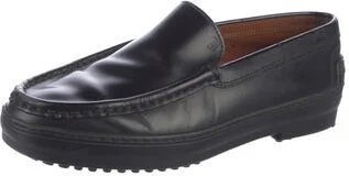 Tod's Leather Loafers Black Round-Toes Unfortunately, due to restrictions, this item may not be eligible for shipping in all areas. Read more