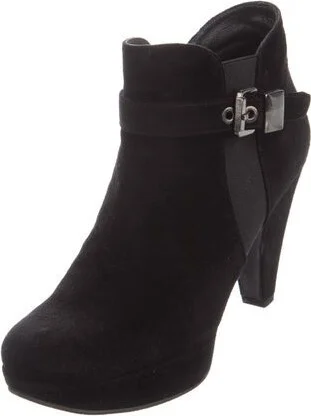 Stuart Weitzman Suede Ankle Boots Black Leather Trim Square-Toes Platform Wrap-Around Straps & Buckle Closure at Sides Designer Fit: This designer typically runs true to size.