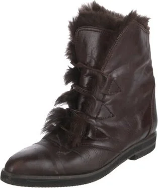 Stuart Weitzman Leather Ankle Lace-Up Boots Brown Semi-Pointed Toes Concealed Zip Closure at Sides Includes Box Designer Fit: This designer typically runs true to size. Unfortunately, due to restricti Read more