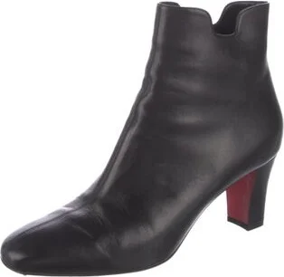 Christian Louboutin Leather Ankle Boots Black Square-Toes Exposed Zip Closure at Sides Includes Box & Dust Bag Designer Fit: This style typically runs a full size small. Unfortunately, due to restrict Read more