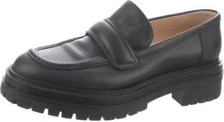 Gianvito Rossi Leather Loafers Black Rubber Trim Round-Toes Platform Includes Dust Bag Unfortunately, due to restrictions, this item may not be eligible for shipping in all areas. Read more