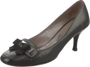 Salvatore Ferragamo Leather Pumps Black Square-Toes with Bow Accents Fit: This style typically runs a half size small. Unfortunately, due to restrictions, this item may not be eligible for shipping in all areas.
