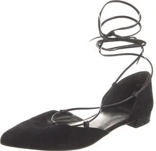 Stuart Weitzman Suede D'Orsay Flats Black Semi-Pointed Toes Wrap-Around Straps & Tie Closures Designer Fit: This designer typically runs true to size. Read more