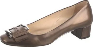 Prada Leather Pumps Black Square-Toes Buckle Closure At Uppers Includes Box Designer Fit: Pumps by Prada typically run a half size small. Unfortunately, due to restrictions, this item may not be eligi Read more