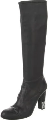 Valentino Leather Knee-High Boots Black Rockstud Accents Semi-Pointed Toes with Crystal Embellishments Includes Dust Bag Fit: This style typically runs a half size to a full size small. Unfortunately, due to restrictions, this item may not be eligible for shipping in all areas.