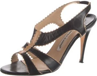 Manolo Blahnik Leather Slingback Sandals Black Fit: This style typically runs narrow and a half size small. Unfortunately, due to restrictions, this item may not be eligible for shipping in all areas.