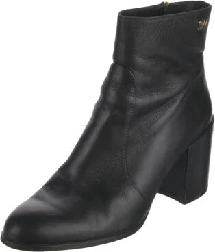 Stuart Weitzman Leather Ankle Boots Black Round-Toes Exposed Zip Closure at Sides Designer Fit: This designer typically runs true to size. Unfortunately, due to restrictions, this item may not be elig Read more