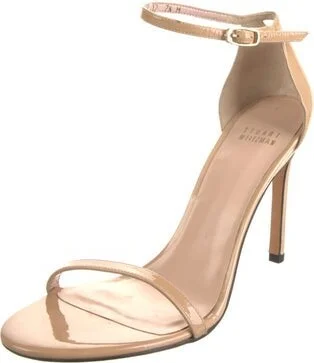Stuart Weitzman Patent Leather Sandals Neutrals Platform Wrap-Around Straps & Buckle Closure at Ankles Designer Fit: This designer typically runs true to size. Read more